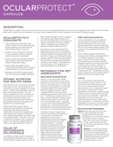 The OcularProtect monograph discusses the importance of multinutrients, rationale for ingredients and how they work to protect visual and whole body health. Includes Supplement Facts, usage and precautionary notes, as well as references.